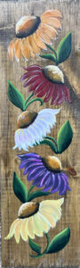 Fee Includes: Instruction and all materials (6×24 wooden board pre-stained, hardware for hanging, acrylic paints, brushes, tablecloths, etc.)
