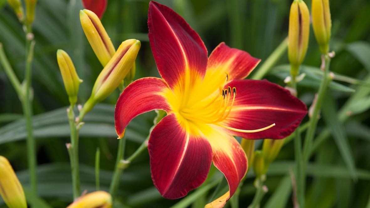 A vibrant display of color, the Jernigan Daylily Garden showcases an ever-changing array of daylilies in shades of yellow, orange, red, and pink. Blooming from late spring through summer, this stunning collection highlights the beauty and diversity of one of the most beloved perennial flowers.